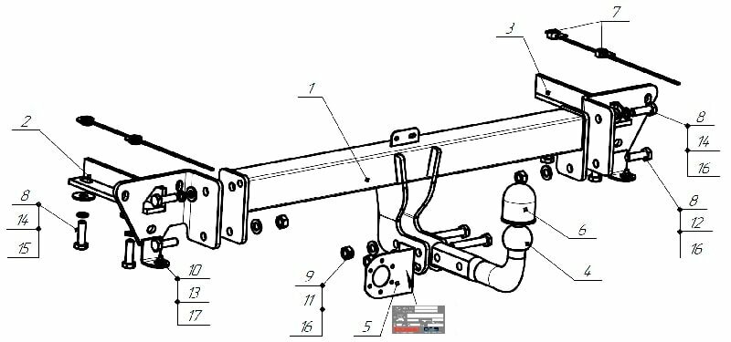 Фаркоп Baltex для Ленд Ровер Рендж Ровер Спорт 2005-2013, модель №1, арт:043338-1