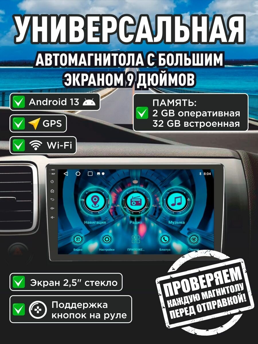 10 цен на Универсальная магнитола для автомобиля (автомагнитола) с большим и чётким экраном 9 дюймов Android 2 din, GPS, Bluetooth, WiFi, FM, USB