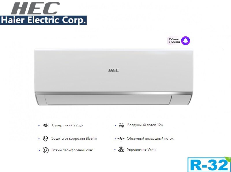 Сплит-система HEC(Haier) HEC-18HRE03/R3-W до 56 кв. м. Wi-Fi встроен