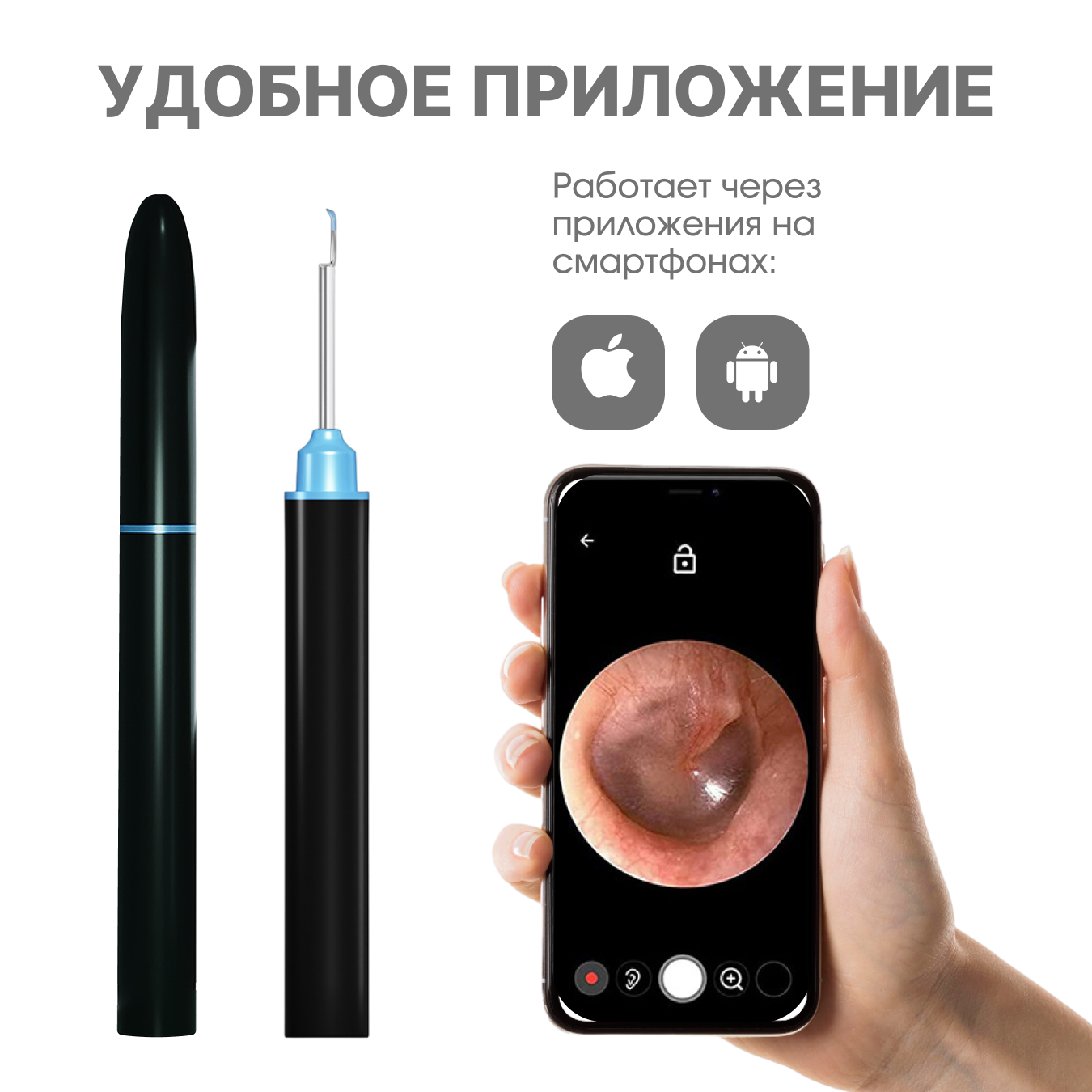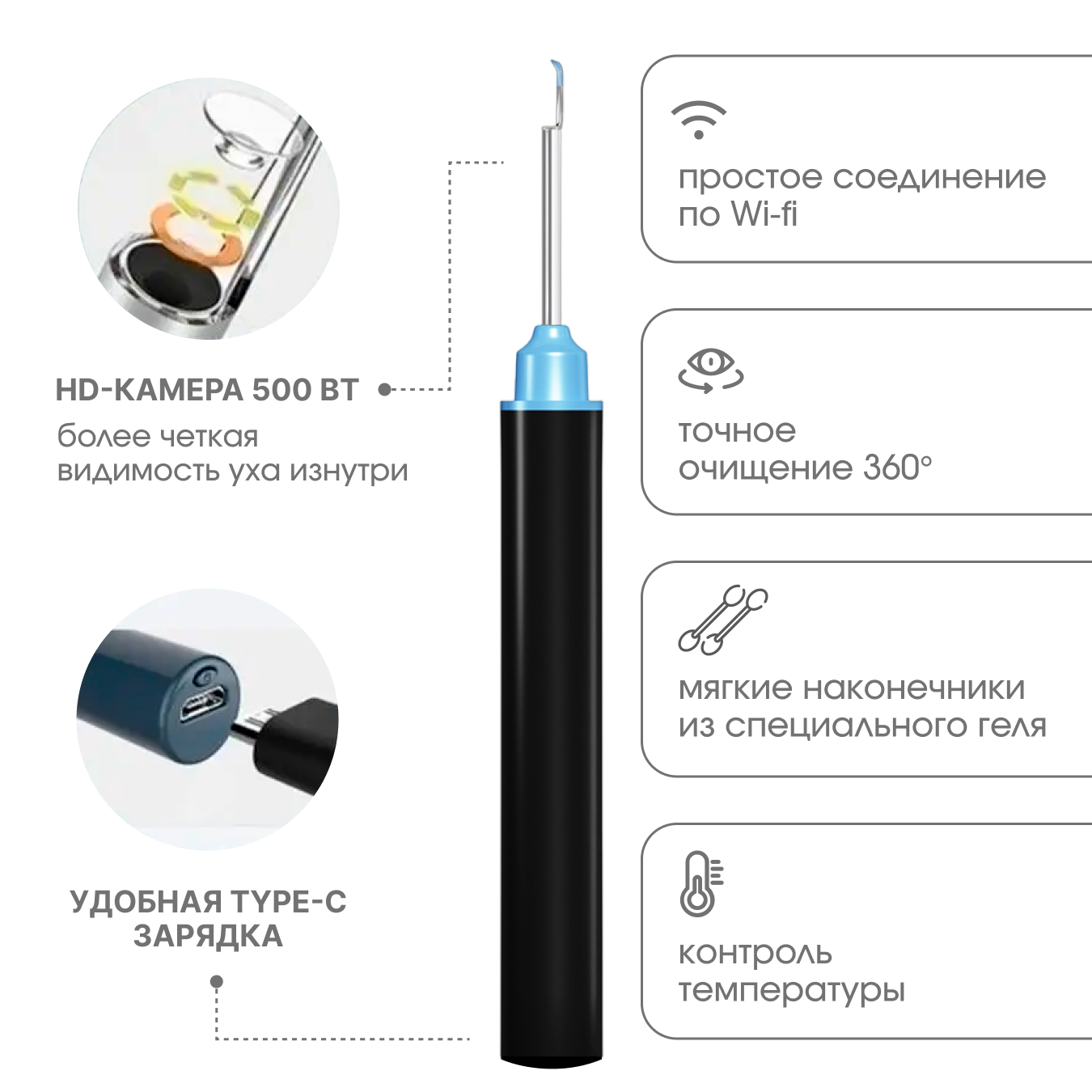 Отзывы на Умная ушная палочка V105 Черная/Косметические аппараты для ушей/Ушная палочка/Отоскоп/Инструмент для чистки ушей