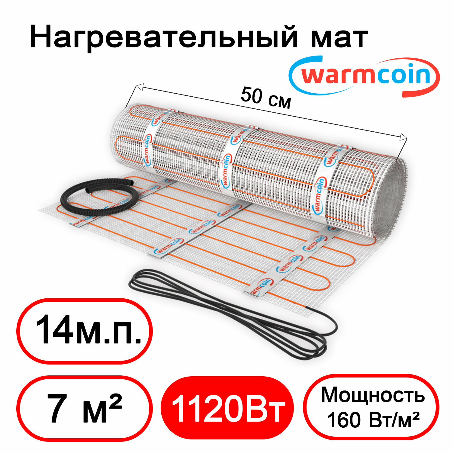 Теплый пол Warmcoin Экомат 7 м.кв. (0.5 х 14 м ) с термостатом