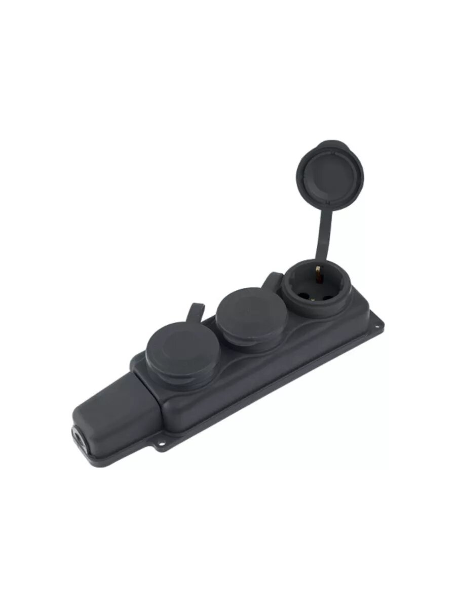 Розетка 3-ая переносная (с/з, 16А, 250В, брызг. защ.) каучук, черная, Юпитер (РП16-334) (JP7601-03) (юпитер)