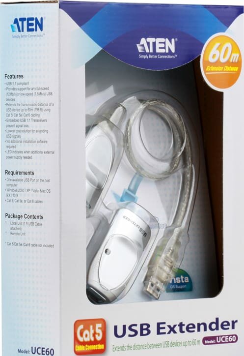 Удлинитель Aten UCE60-AT USB 1.1, 60 м, USB A-тип, Male/Female, без шнуров, питание от шины