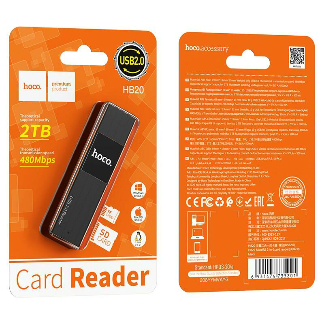 Картридер 2 в 1, USB 2.0, HB20, HOCO, поддержка TF/SD карт информация: