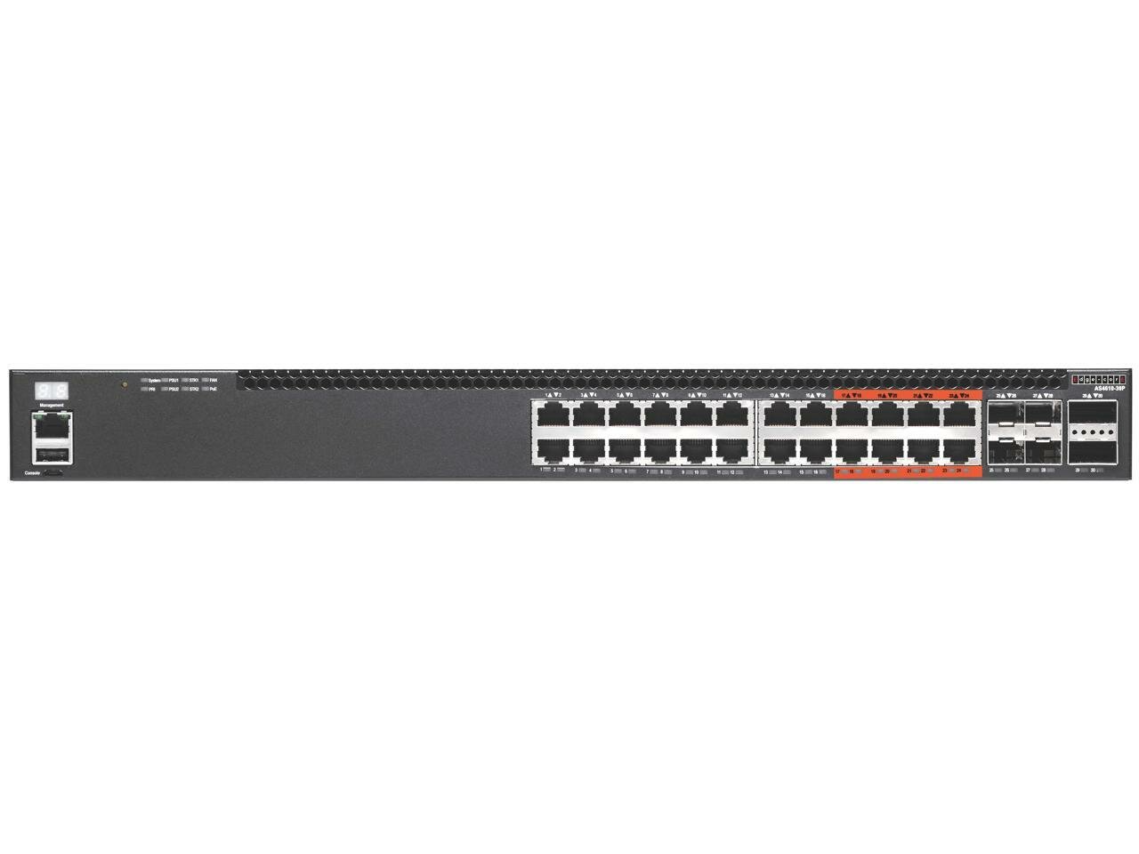 Коммутатор 4610-30P-O-AC-F Edge-corE AS4610-30P, 24-Port GE RJ45 port PoE+, last 8 ports Ultra-PoE, 960W PoE Bugdet, 4x10G SFP+, 2 port 20G QSFP+ for stacking, Broadcom Helix 4, Dual-core ARM Cortex A9 1GHz, dual 110-230VAC 600W hot-swappable PSUs, one fi