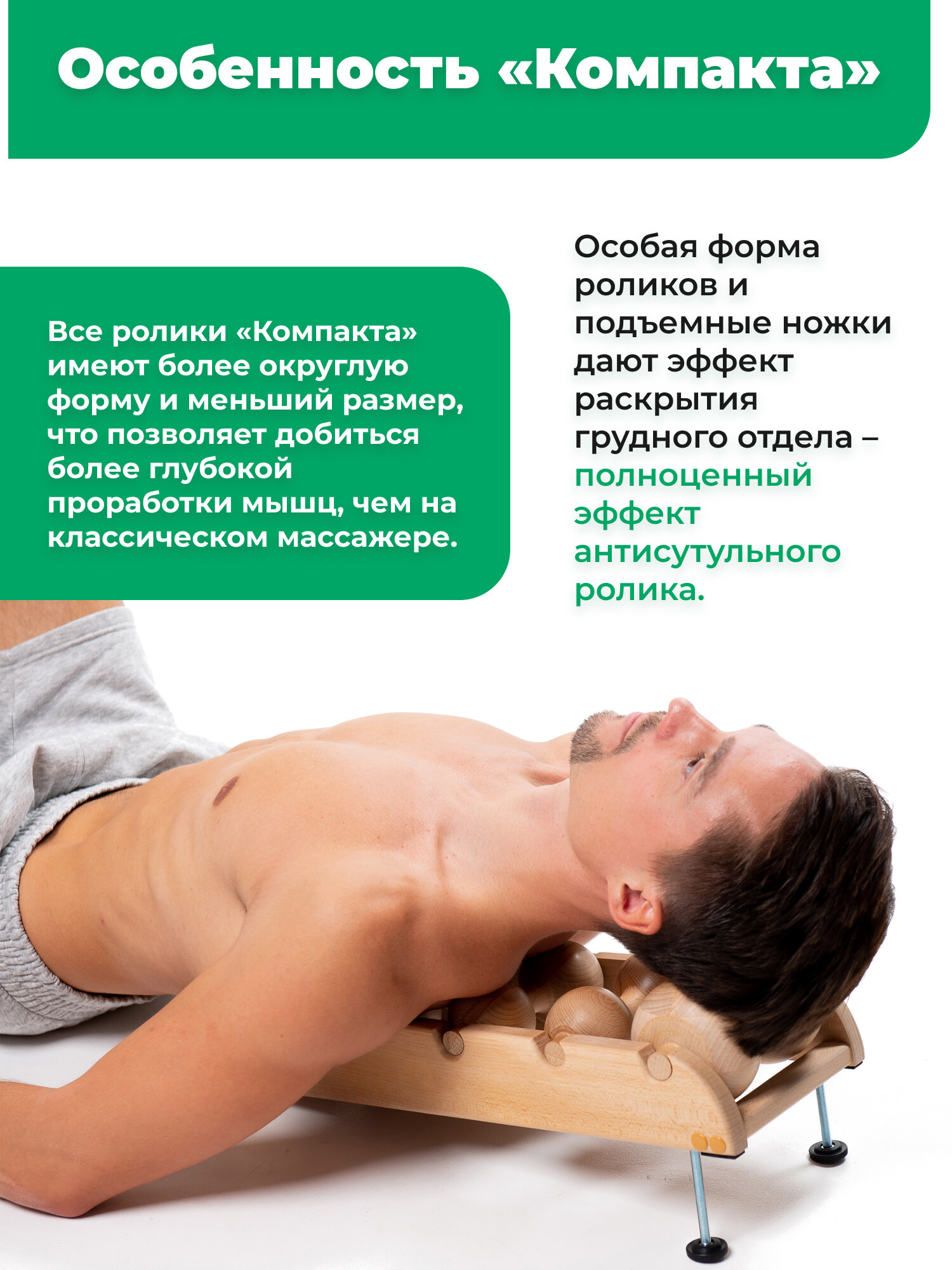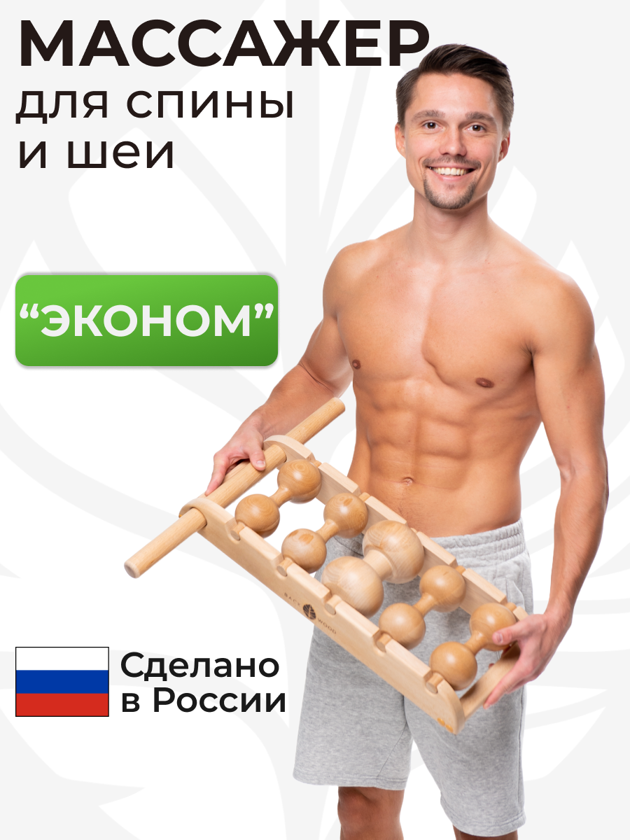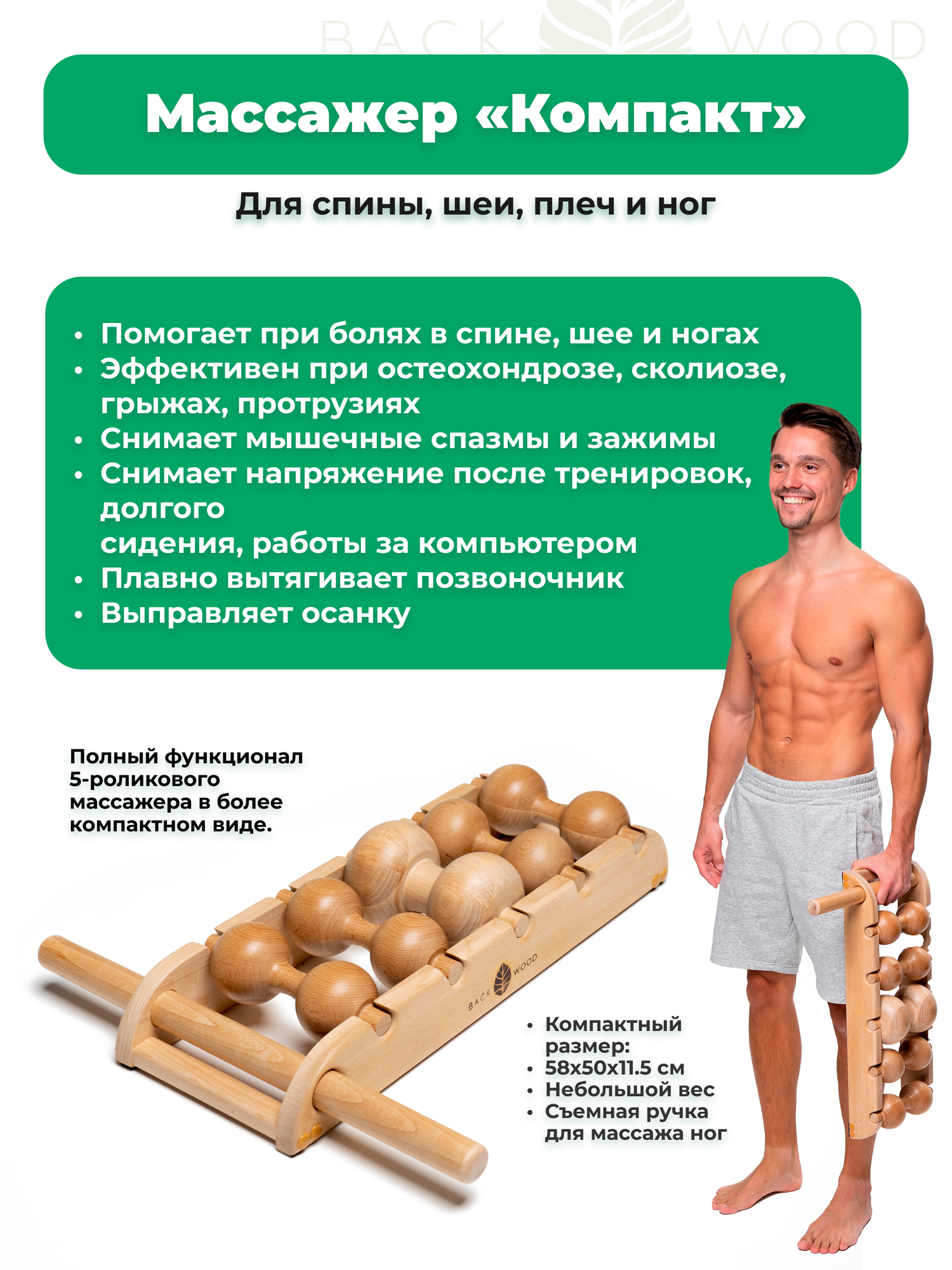 Back Wood Деревянный 6-ти роликовый массажер и тренажер для спины и всего тела"BackWooD" + Шипованный ролик