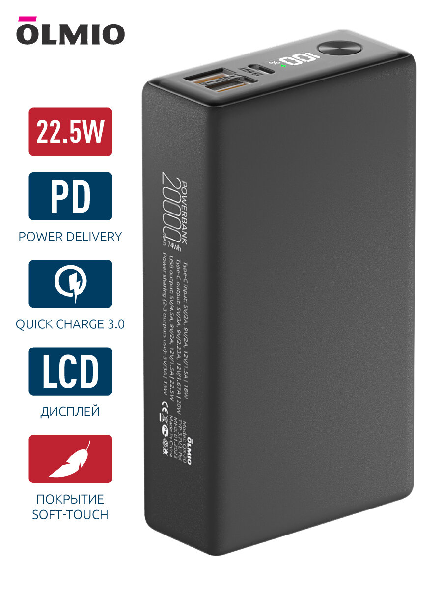Внешний аккумулятор QX 20000 mAh OLMIO, LED дисплей, PD 3 590 ₽