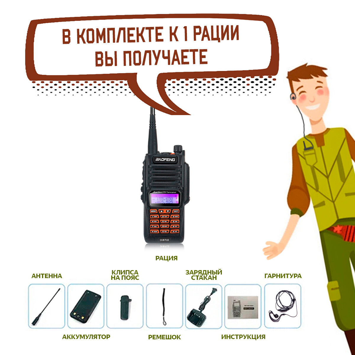 Портативная радиостанция Baofeng UV-9R Plus 8 Вт / Черная комплект 2 шт / UHF; VHF информация: