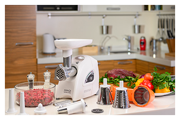 | Особенности | защита от перегрузки, отсек для сетевого шнура, насадки для приготовления колбас, толкатель |