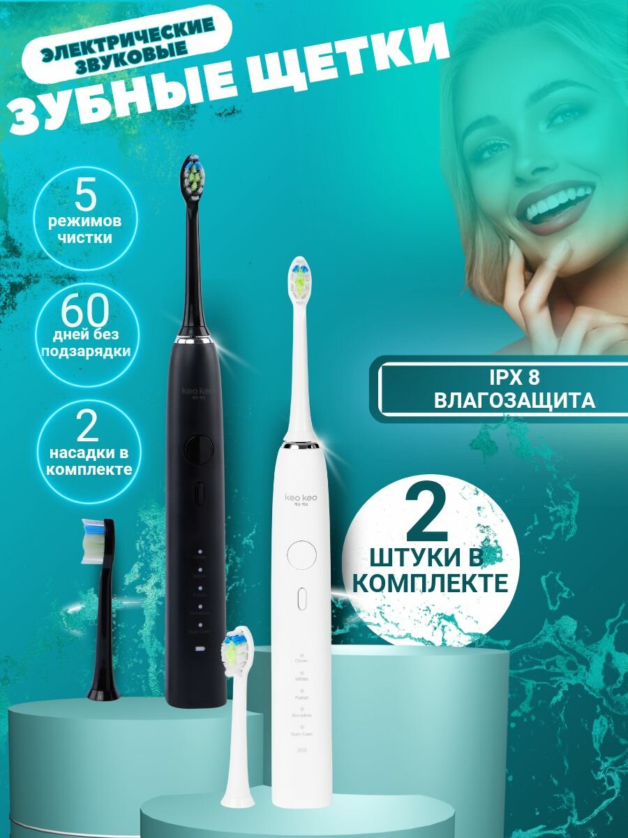 10 цен на Набор 2 шт звуковая электрическая щетка keo keo Richdent Easycare черная + белая