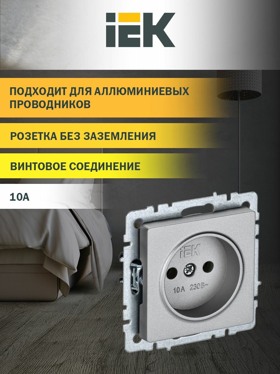 BRITE Розетка 1-местная без заземления без защитных шторок 10А РС10-1-0-БрА алюминий IEK информация: