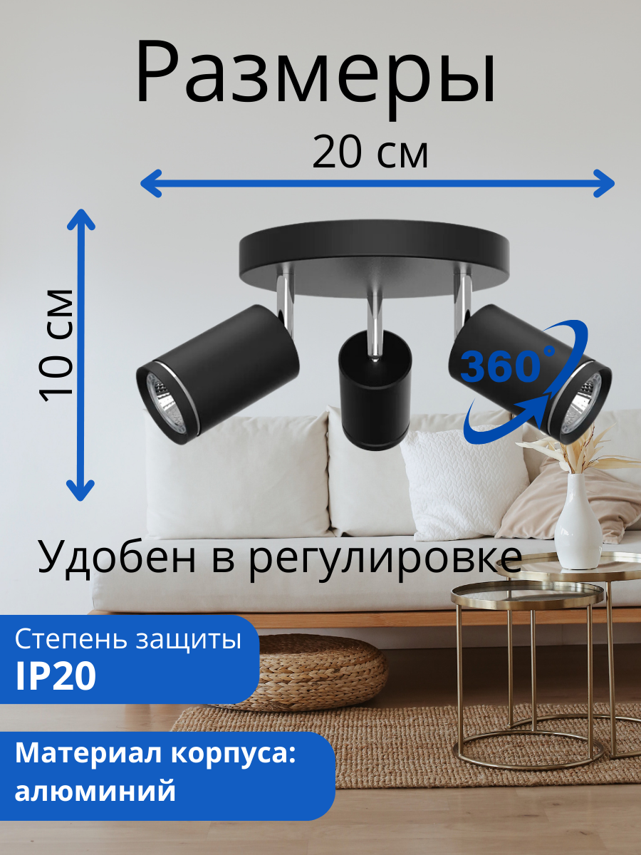Отзывы на Светильник накладной под лампу ИВО черный 3*50Вт под лампу GU10 ML203, 41924