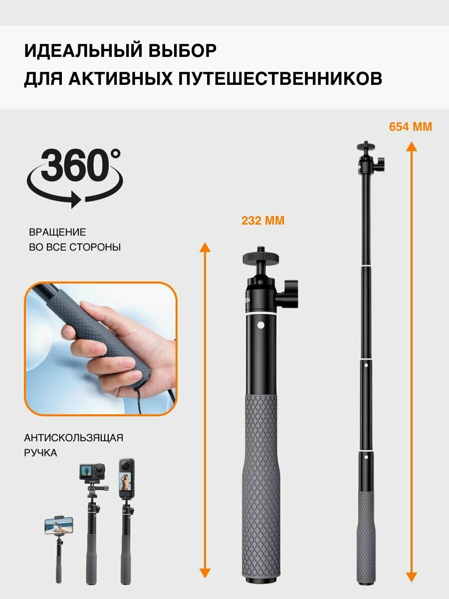Монопод, селфи-палка Telesin Eccentric из углеродного волокна 3м, GP-MNP-300-3 4 990 ₽