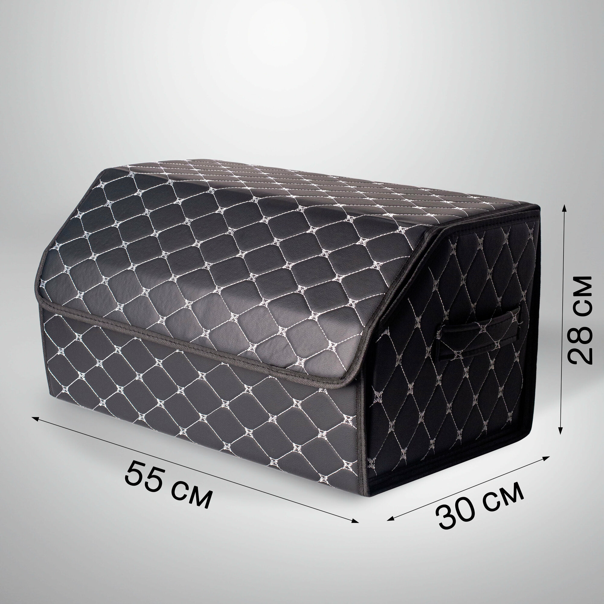 Саквояж в багажник автомобильный эко кожа черная синий ромб, объем 45 л