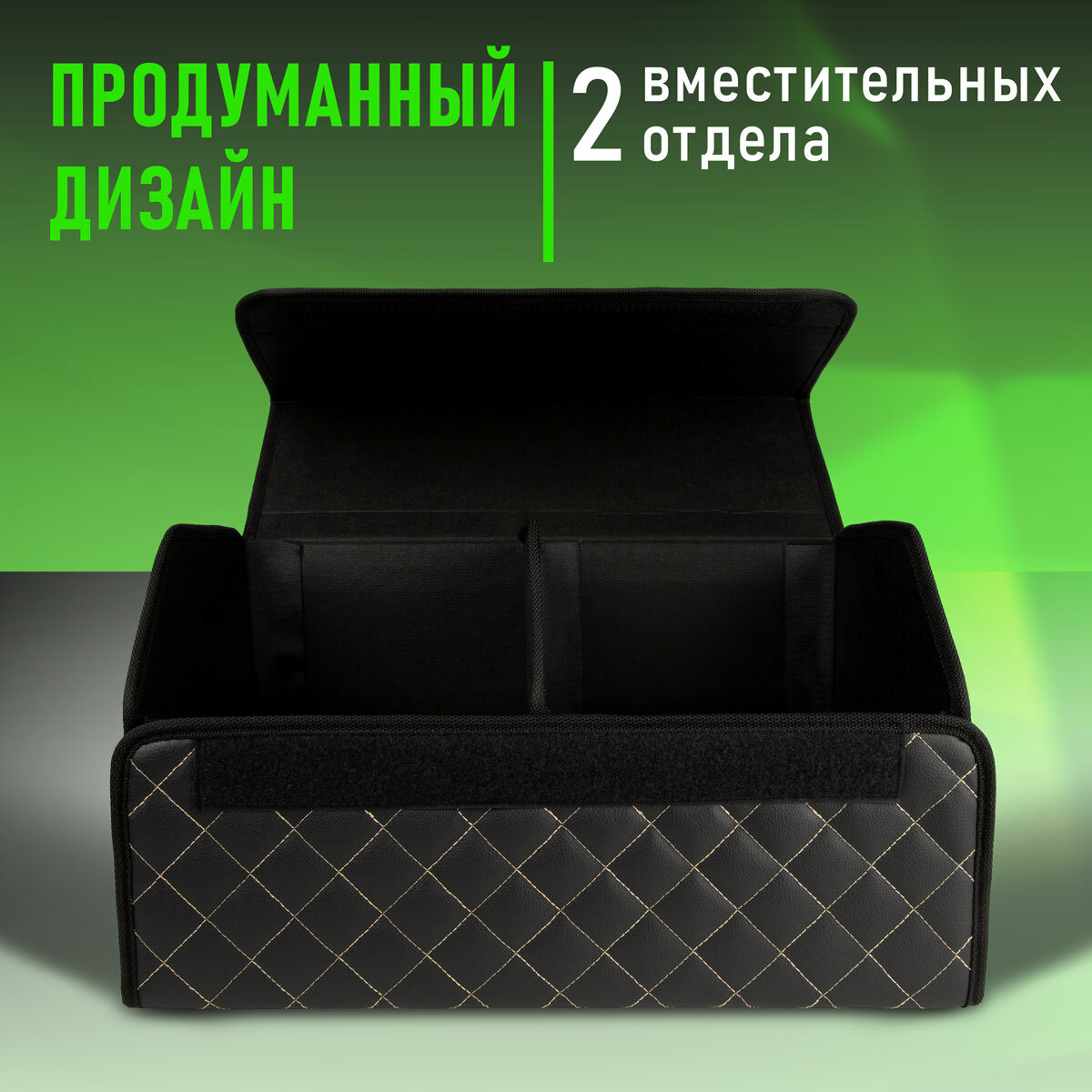 10 цен на CarCape/Органайзер в багажник автомобиля. Автомобильный бокс для хранения. Модель Classic ромб 50*30см/ Черный, бежевая строчка