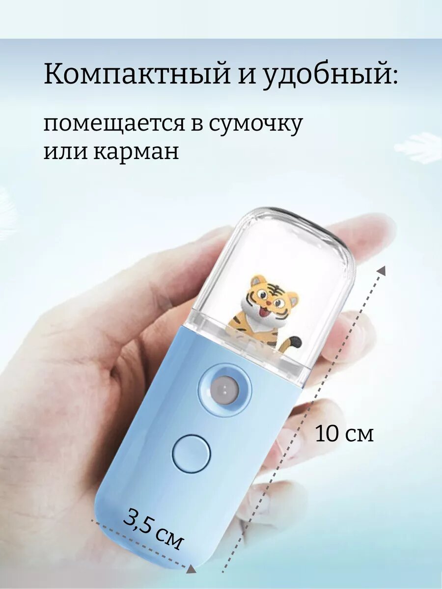 10 цен на Увлажнитель для лица мини, наноувлажнитель с игрушкой тигренок голубой