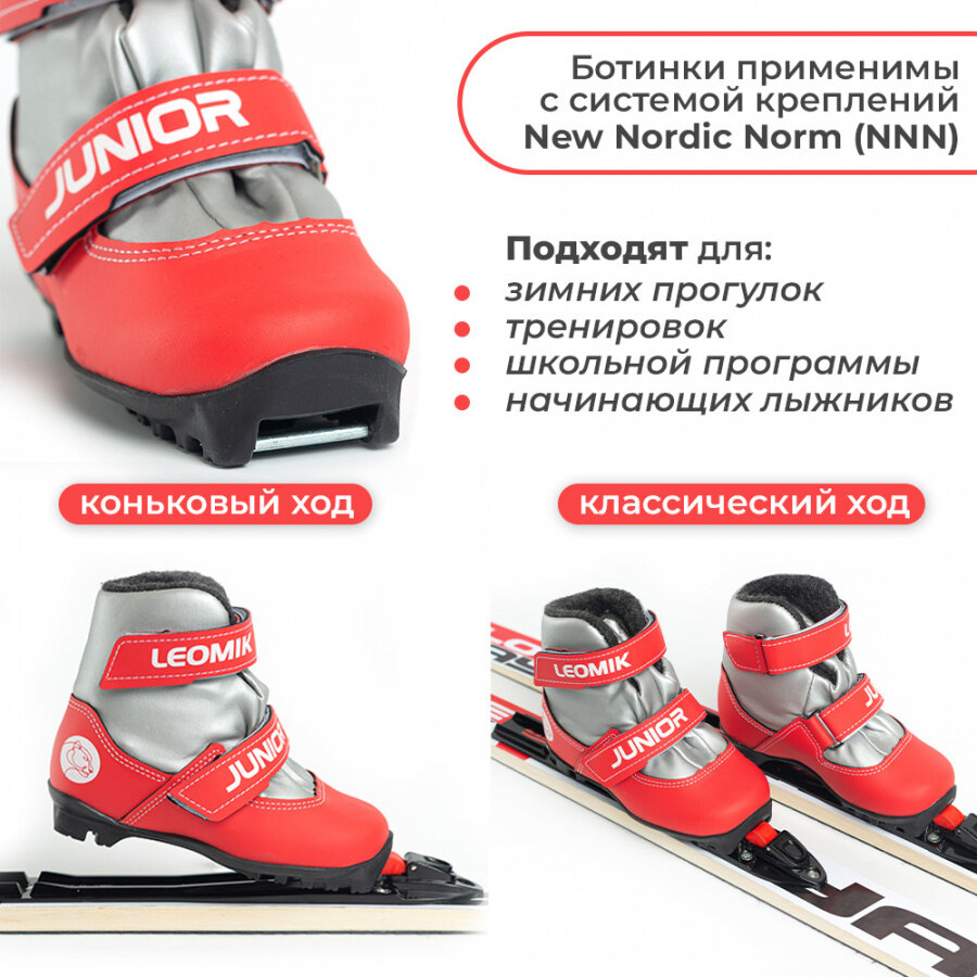 Ботинки лыжные детские Leomik Junior NNN, размер 31, серо-красные информация: