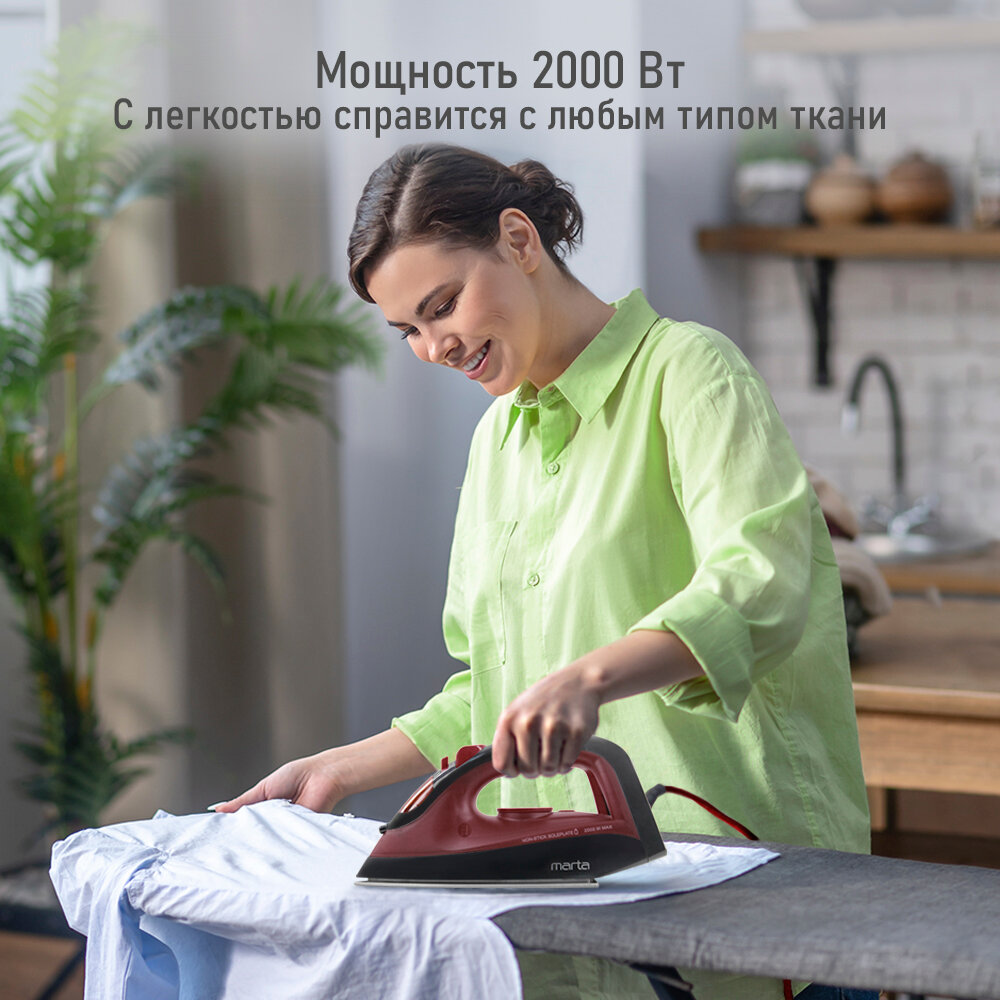 Утюг для одежды MARTA MT-1148 2000Вт, тефлоновое покрытие, система защиты от накипи ANTI-CALC, бордовый гранат информация: