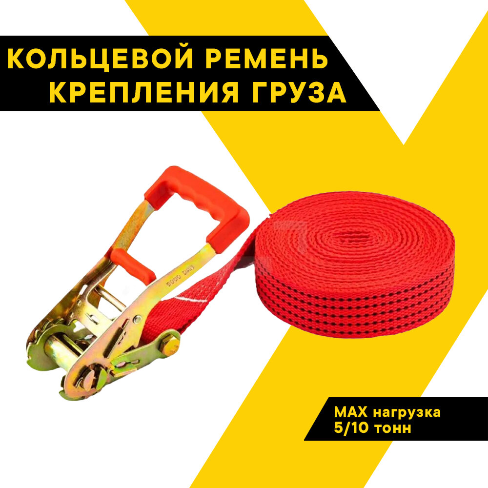 10 цен на Стяжка для груза, TOP AUTO, кольцевой ремень, ширина ленты 55мм, 5000/10000кг, 8м механизм 230 мм каленый, КРК1008