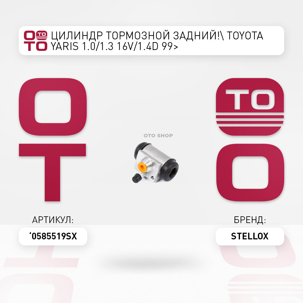 цилиндр тормозной задний \ Toyota ( Тойота ) ( Тойота Тоёта Таёта ) Yaris ( Ярис ) ( Ярис ) 1.0 / 1.3 16V / 1.4D 99 STELLOX 0585519SX, 0585519_SX, 05-85519-SX 1 814 ₽