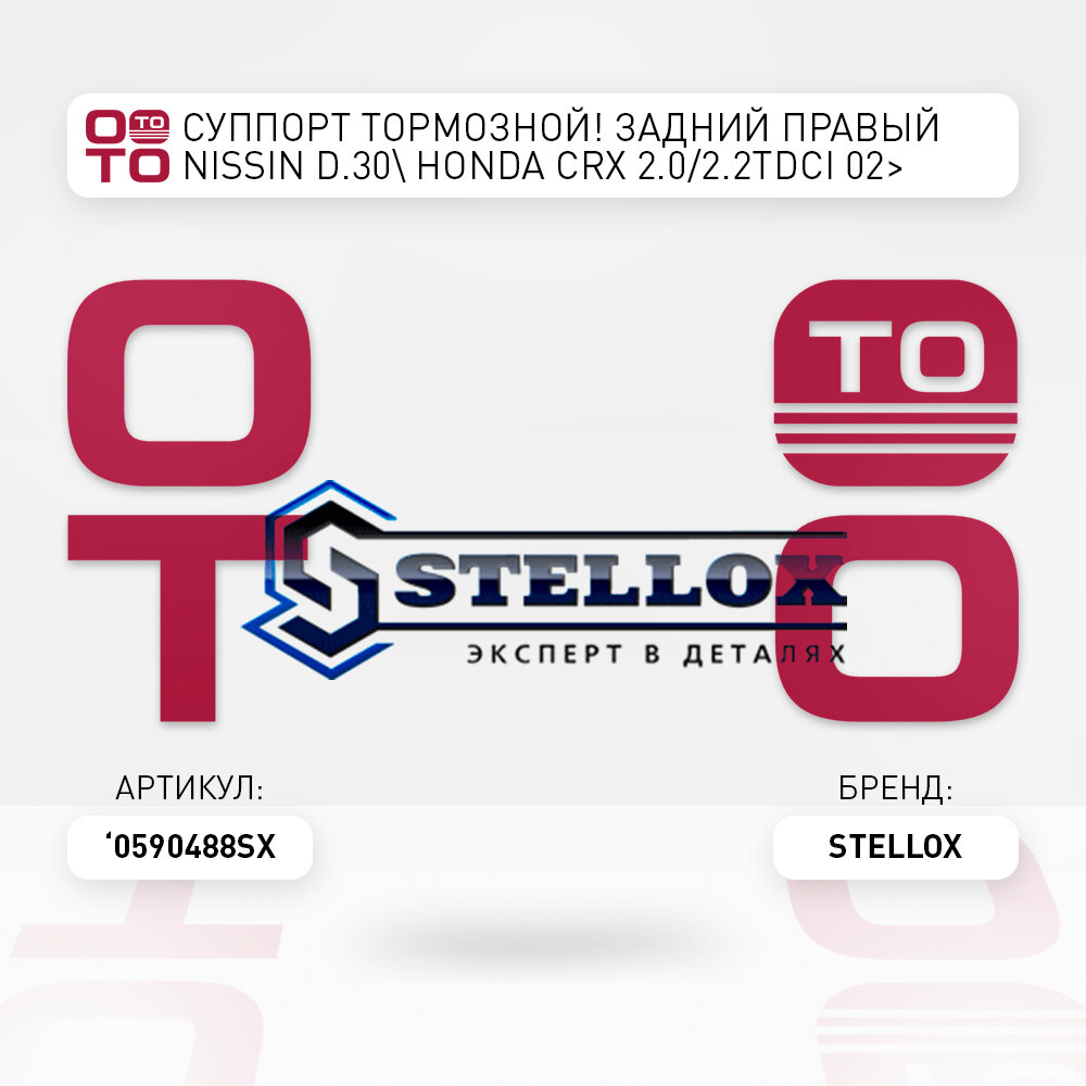 STELLOX 0590488SX 05-90488-SX_суппорт тормозной! задний правый Nissin d.30\ Honda CRX 2.0/2.2TDCi 02> 7 390 ₽