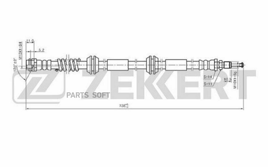 Шланг тормозной Hyundai Solaris 10-, Kia Rio 10- передний Zekkert правый ZEKKERT BS9474 | цена за 1 шт