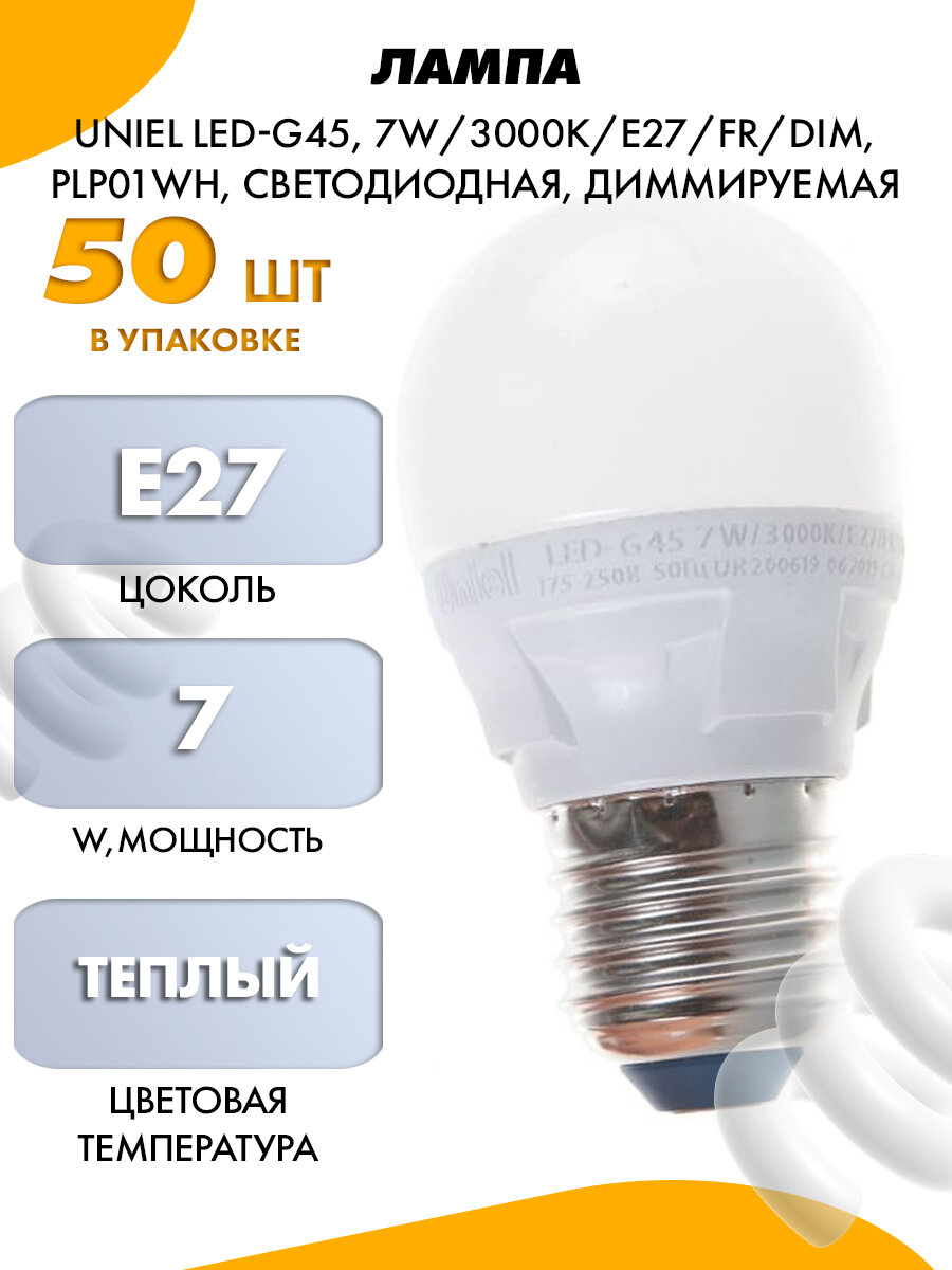 Отзывы на Диммируемая светодиодная лампа E27 7W 3000K (теплый) Uniel LED-G45 7W-3000K-E27-FR-DIM PLP01WH (UL-00004303)