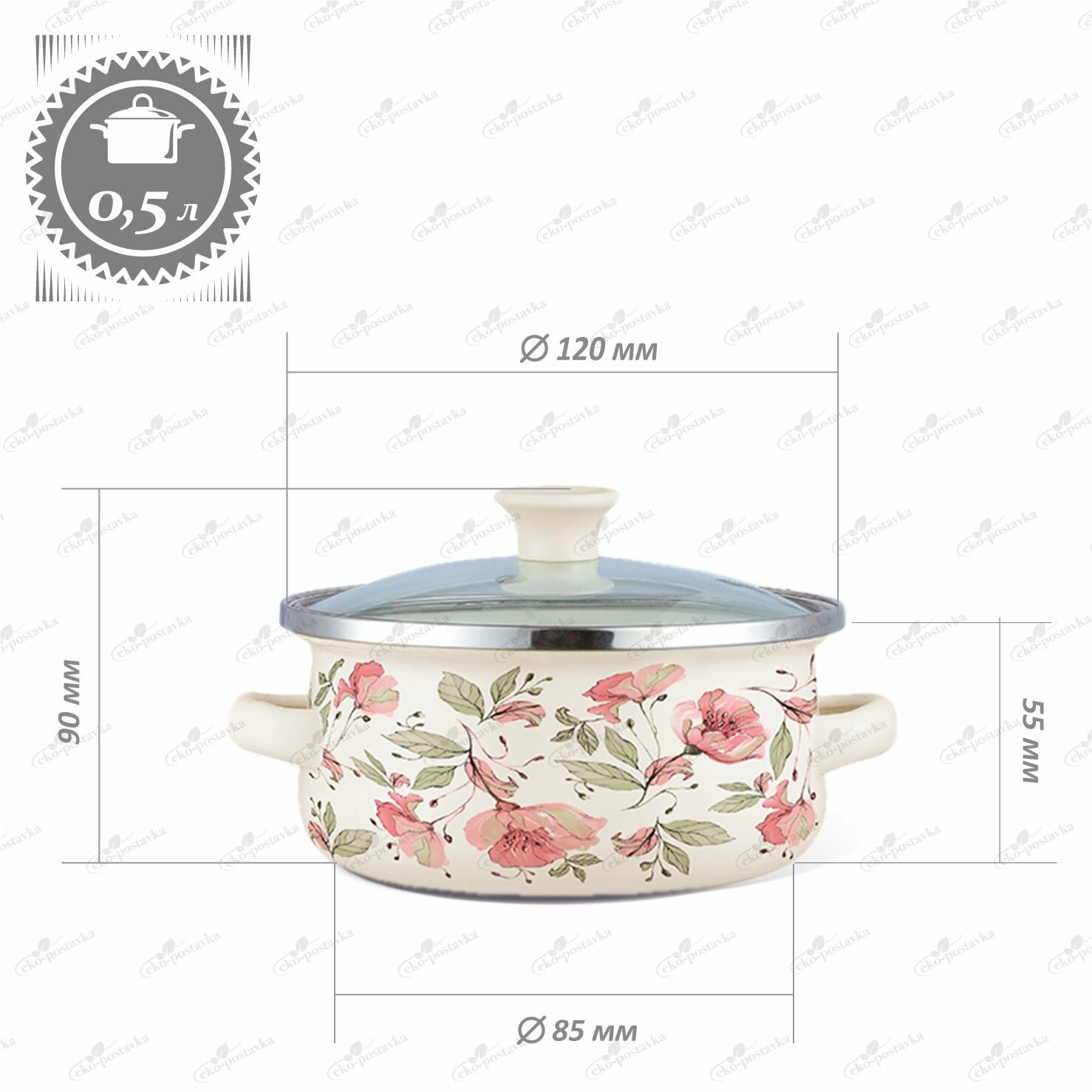 Набор кастрюль Сибирские товары Пионы, эмалированные, 2, 3 и 4 л