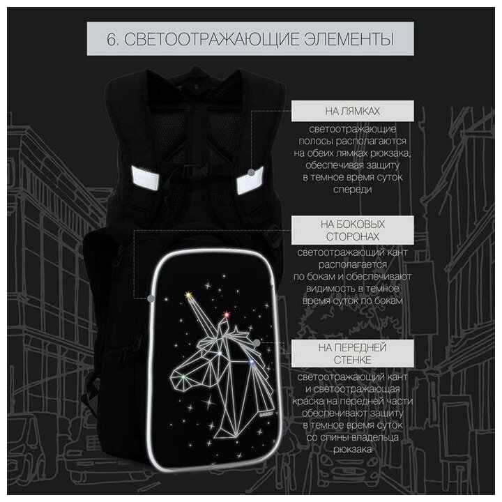 | Особенности | без наполнения / водоотталкивающая пропитка / грудная стяжка / ортопедический / регулируемые лямки / ручка для переноски / светоотражающие элементы / эргономичная спинка |