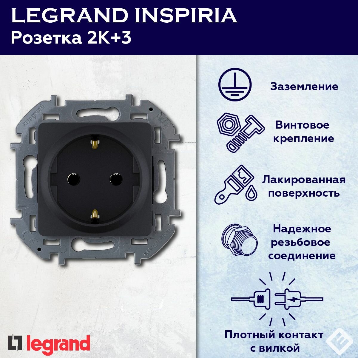 Отзывы на Розетка 2К с заземлением Антрацит,немецкий стандарт - 16А-250В, Legrand INSPIRIA