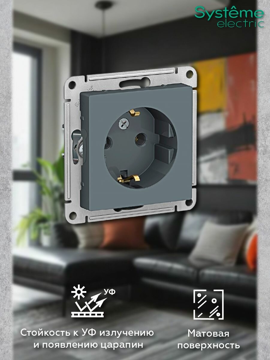 Розетка ATLASDESIGN, скрытый монтаж, с заземлением, карбон | код. ATN001043 | Schneider Electric (6шт. в упак.)