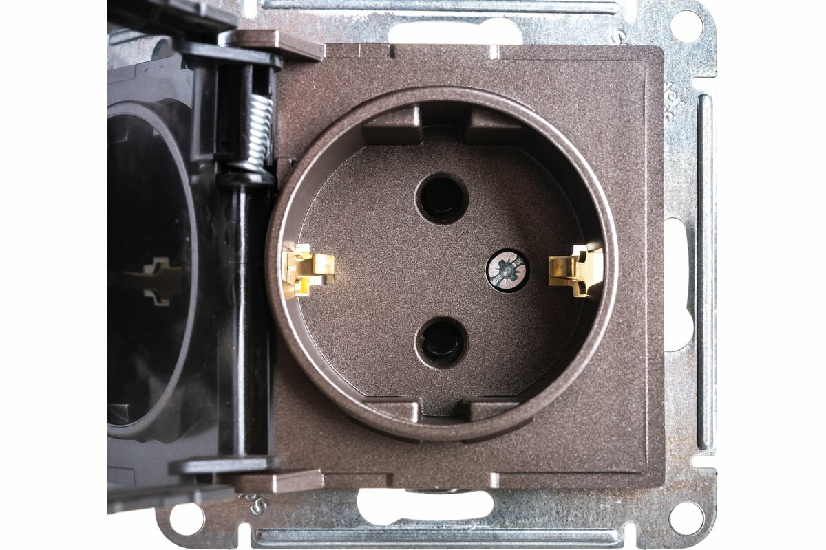 10 цен на SE AtlasDesign Мокко Розетка с/з, со шторками, с крышкой, 16А механизм
