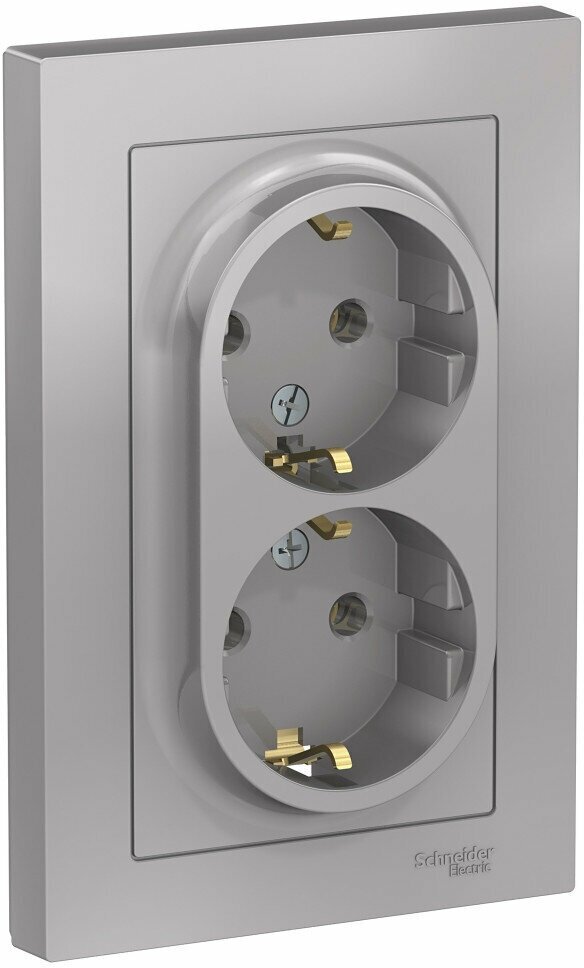 8 шт. Systeme Electric AtlasDesign Алюминий, Розетка c заземлением двойная, 16А, в сборе, ATN000324 4 388 ₽