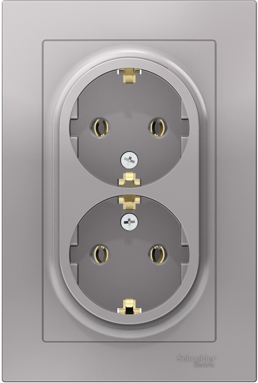 Розетка двойная с заземлением 8 шт Schneider Electric/Systeme Electric AtlasDesign 16А в сборе скрытой установки алюминий Шнайдер ATN000324 информация: