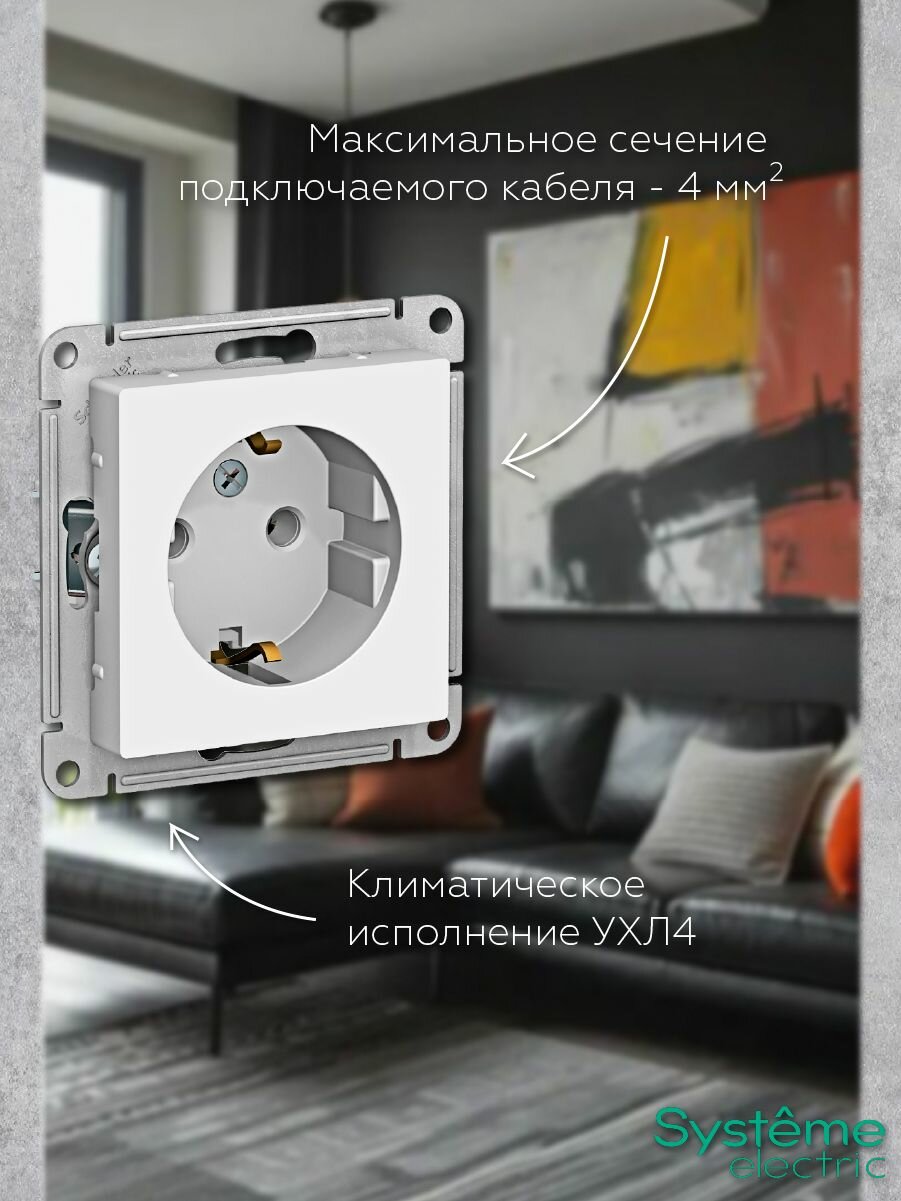 Розетка силовая штепсельная Systeme Electric / Систем Электрик AtlasDesign, 16А 250В IP20 белый, с заземляющим контактом ATN000143 / электрооборудование 484 ₽