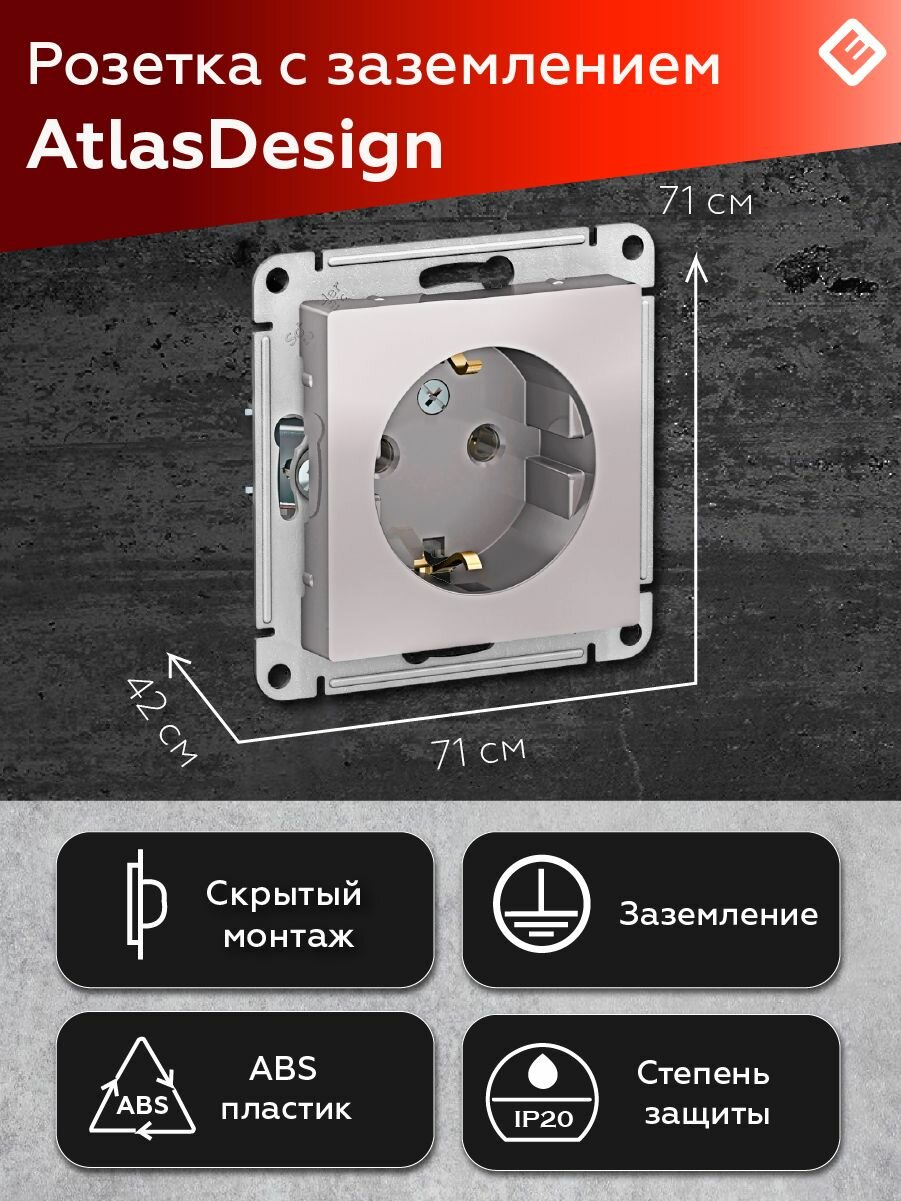Розетка с заземлением, алюминий Schneider Electric AtlasDesign (комплект 7шт) информация: