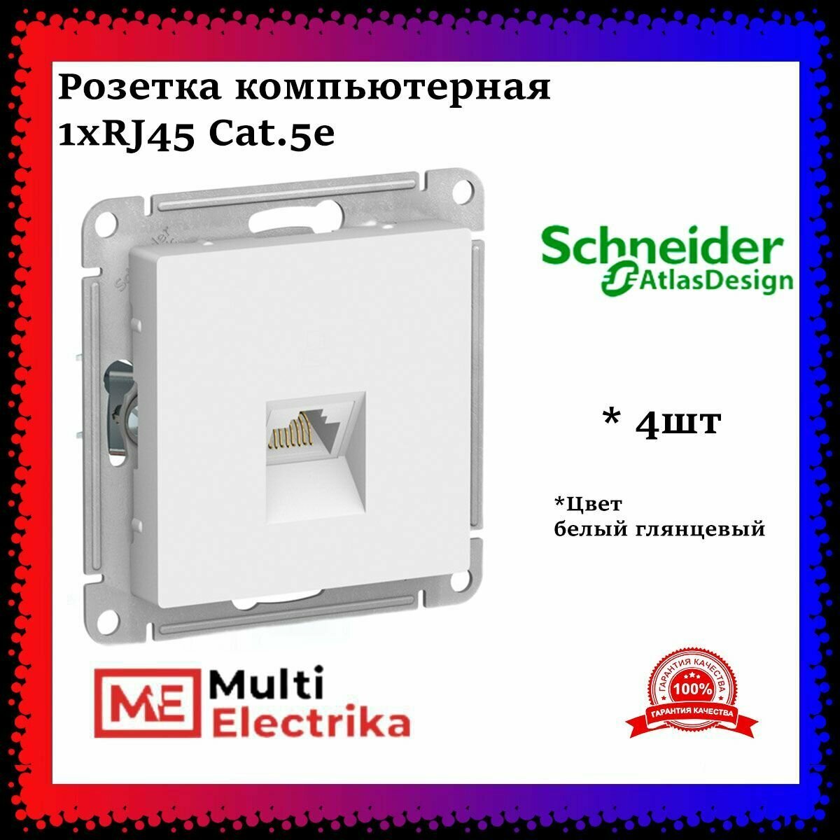 Розетка компьютерная RJ-45 кат. 5е, Белая Schneider Electric, Atlas Design ATN000183 - 4шт информация: