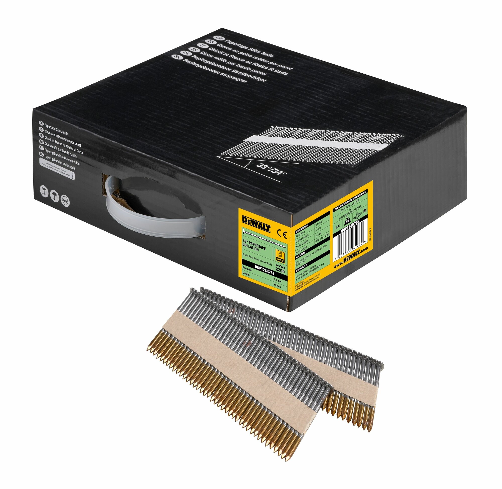 Гвозди DEWALT, для DCN692/DCN690P2, 2,8x75 мм, 33/34, ребристые, 2200 шт., DNPT28R75Z информация: