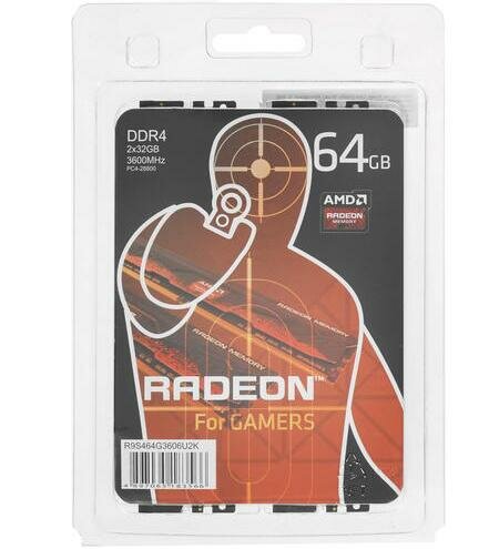 64GB AMD Radeon DDR4 3600 Dimm R9 Gamers Series Black Gaming Memory R9s464g3606u2k Non-ECC, Cl18, 1 . информация: