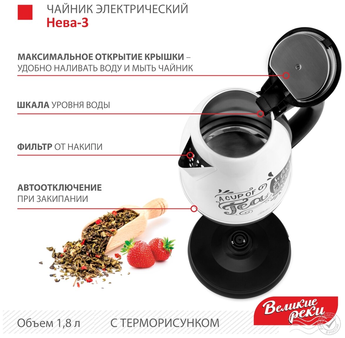 Чайник электрический Великие реки Нева-3 1500Вт, 1,8л с термическим рисунком
