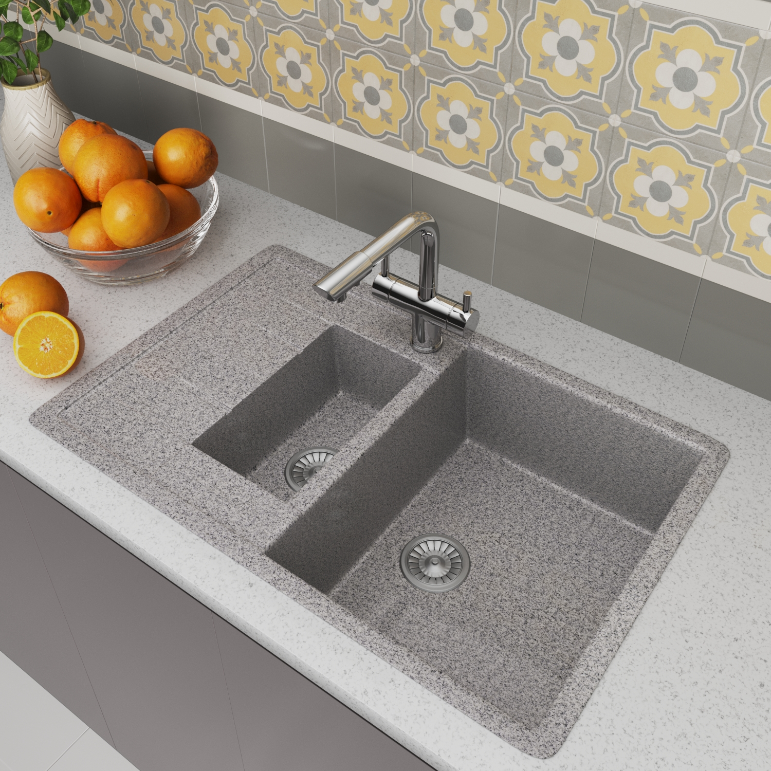 10 цен на Мойка для кухни из искусственного камня двойная (76,6x49,2), серая