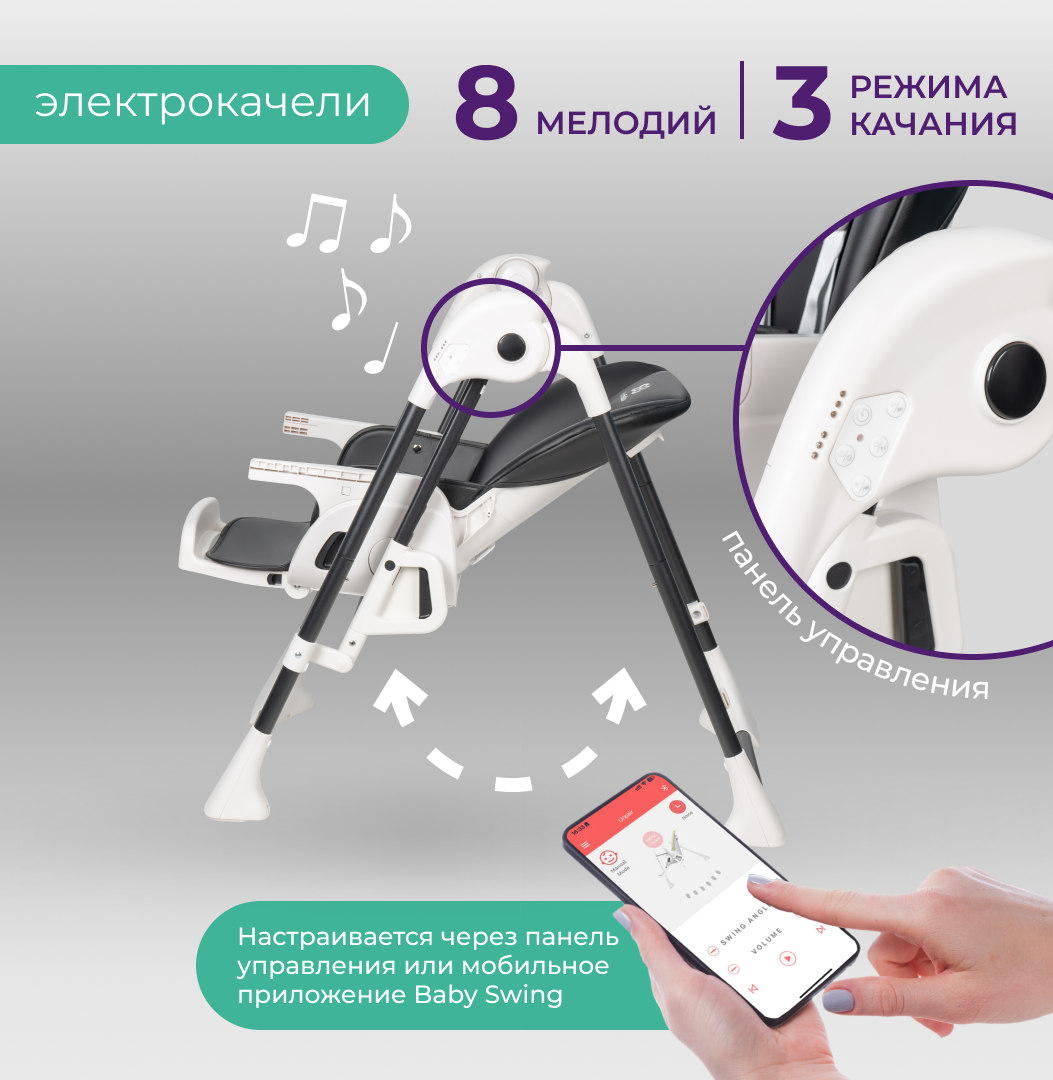 | Функции | автоотключение укачивания / горизонтальное положение спинки / моющееся сиденье / режим "качания" / таймер укачивания |