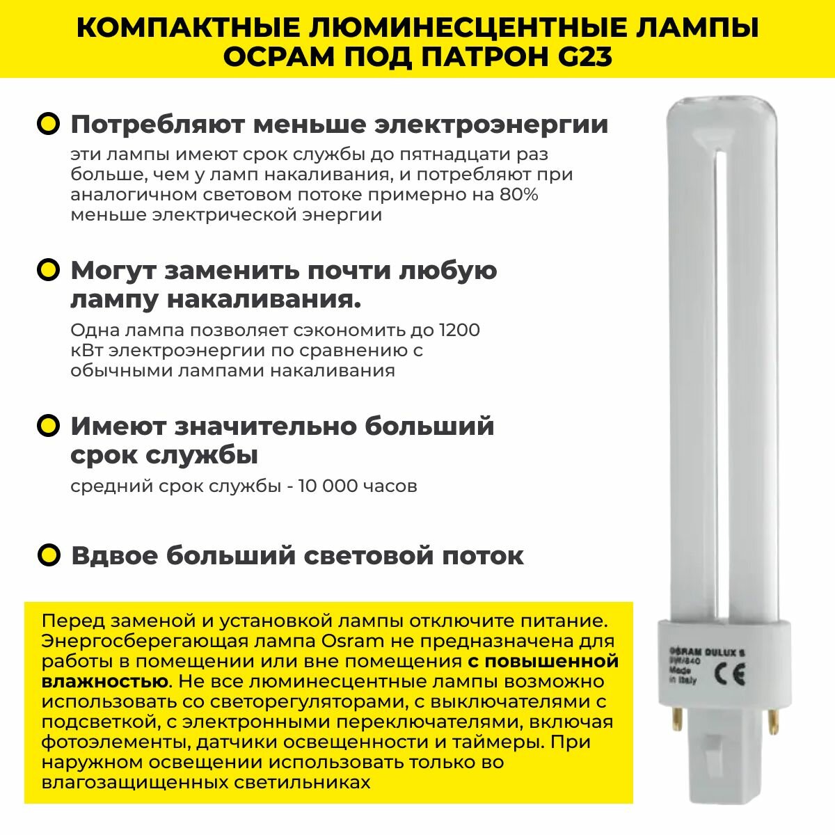 Лампа люминесцентная 11 Вт DULUX-S 900lm 840 G23 информация: