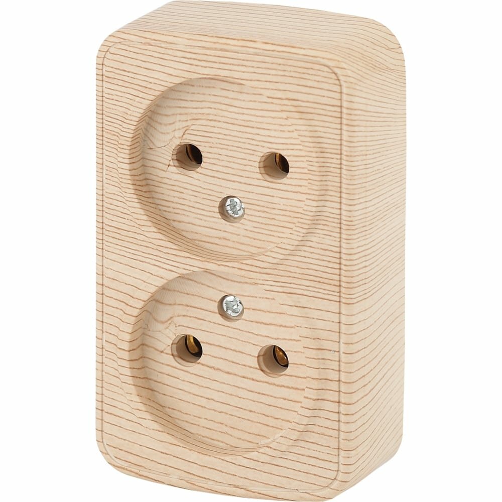 Розетка двойная Intro Polo 3-203-11 без заземления открытой установки 16А 250В сосна информация: