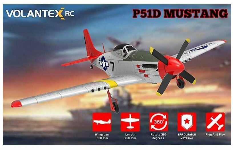 10 цен на Радиоуправляемый самолет Volantex RC P51D 750мм Brushless 2.4G 4ch LiPo RTF with Gyro