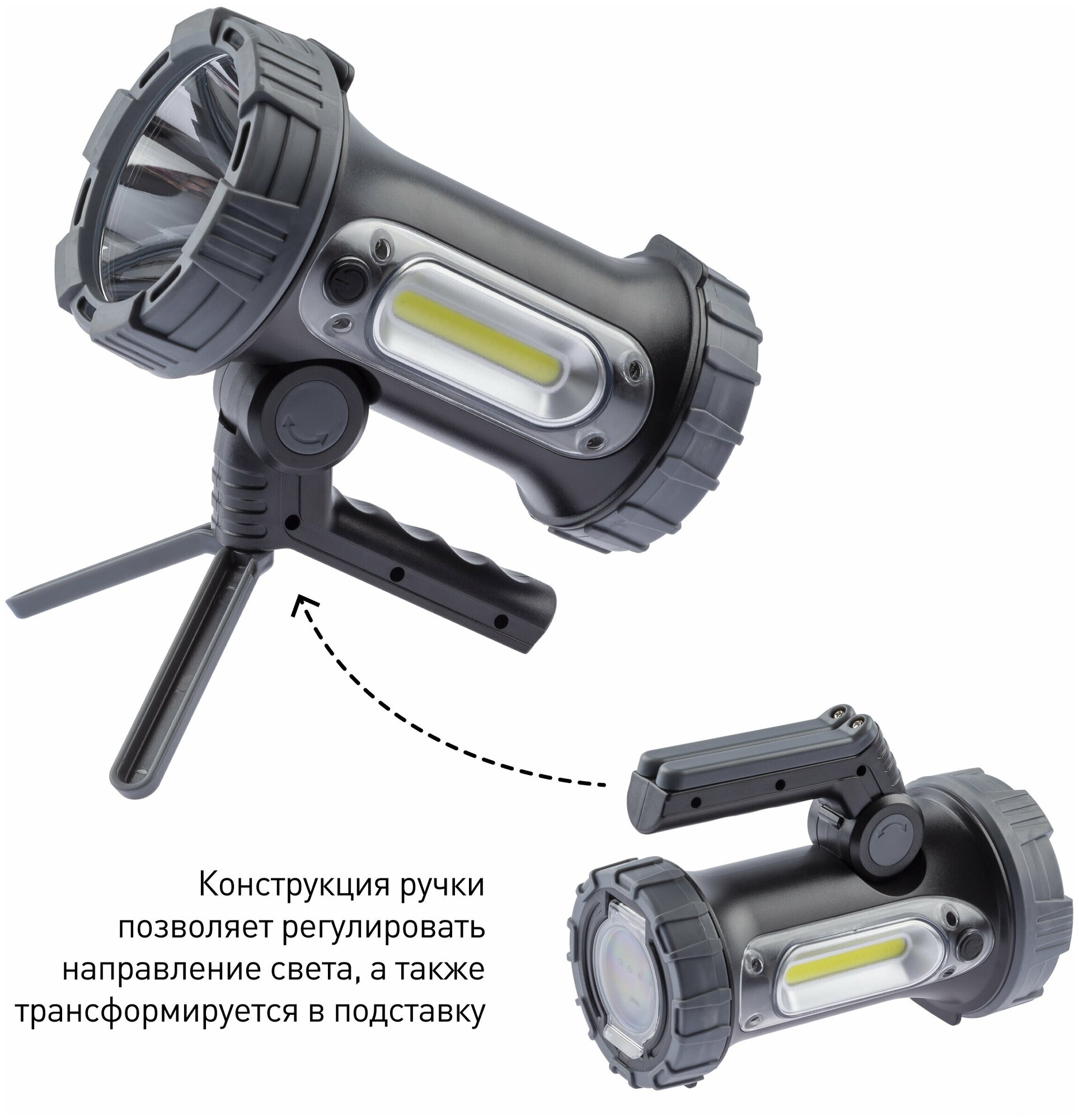 Фонарь светодиодный ЭРА PA-703 прожекторный аккумуляторный, поворотная ручка, 2 источника света