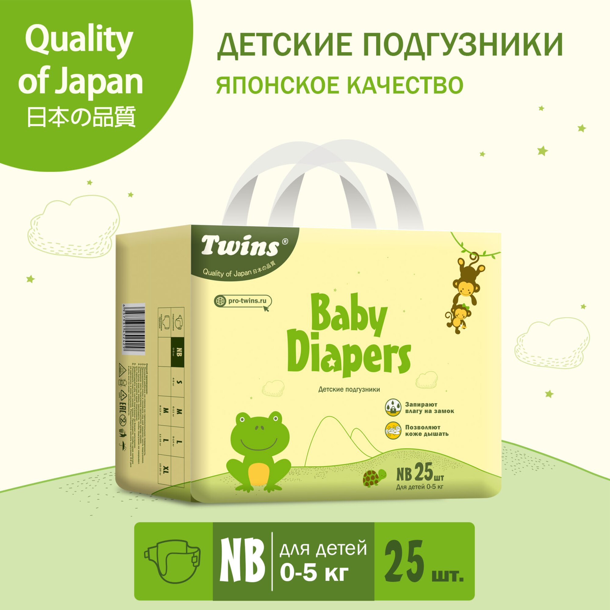 Подгузники Twins, размер NB (0-5кг), 25 шт информация: