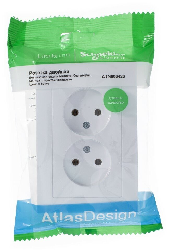 SE AtlasDesign Жемчуг Розетка б/з двойная, 16А, в сборе ATN000420 информация: