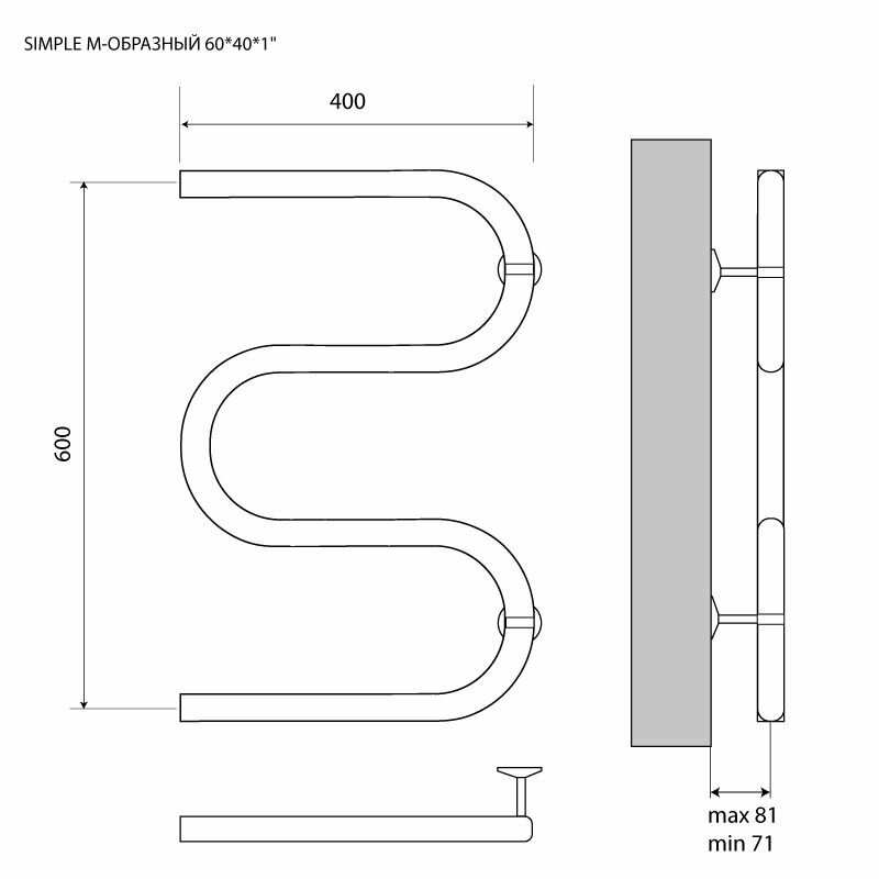 Полотенцесушитель водяной Melodia della vita Simple М-образный б/кронштейна 60*40*1" информация: