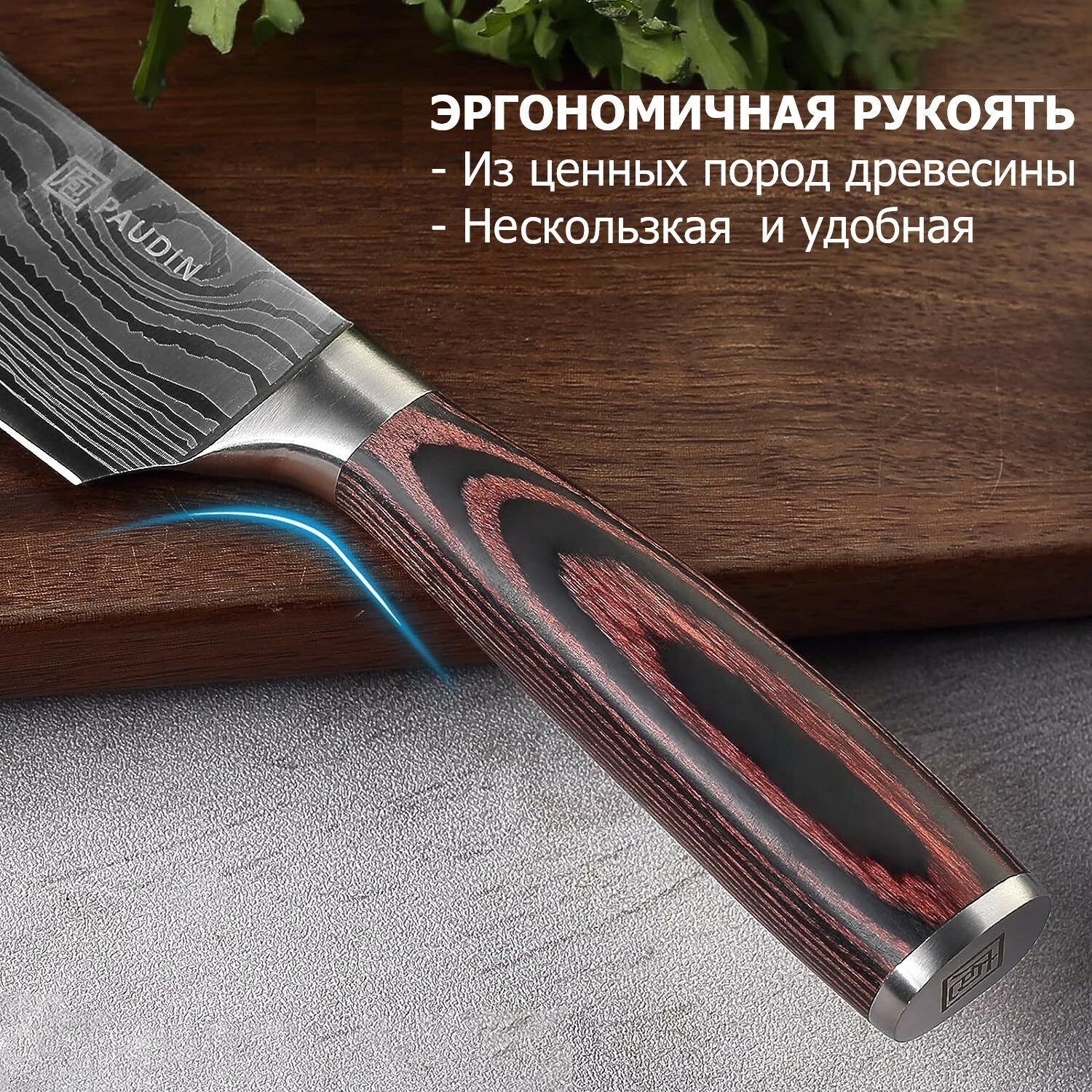 PAUDIN Pro / Набор ножей кухонных профессиональных шеф повара, сантоку, для хлеба, универсальный и фруктовый для мяса рыбы и овощей 9 790 ₽
